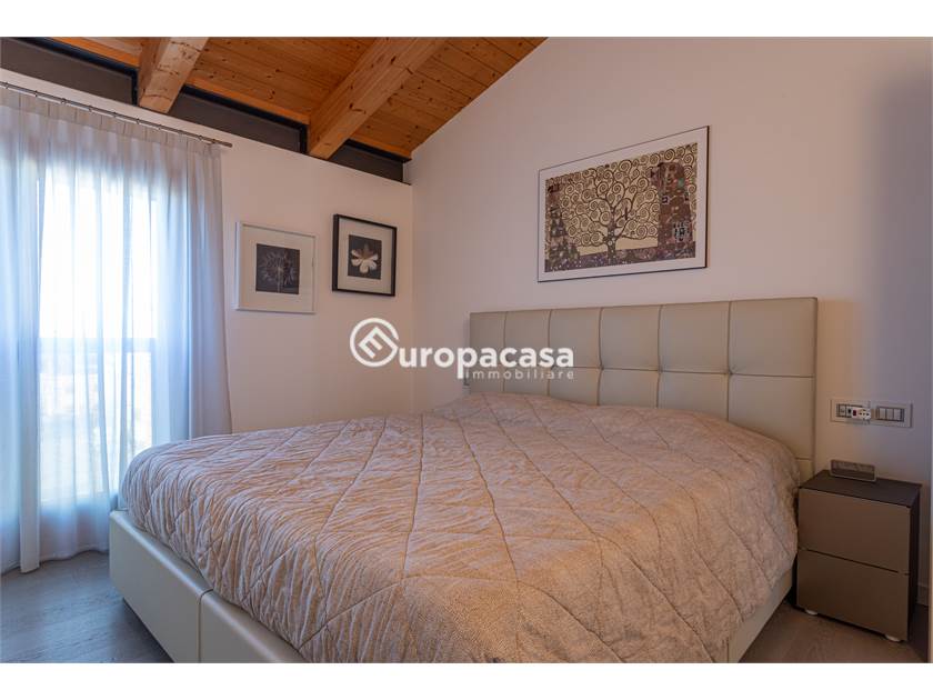 La zona notte, ben distribuita, offre un pratico disimpegno, due camere da letto e bagno e ripostiglio, entrambi rifiniti con materiali moderni e di alta qualità.